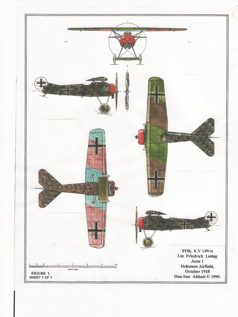 Zgadza się to malowanie smugowe ale przez to, że skrzydło kryte było sklejką i pod koniec wojny (inne kolory i farby? zaznaczam znowu, że to moje wnioski) wyglądało inaczej niż typowy Fokkerowski kamuflaż smugowy. Poniżej masz fotę repliki zrobionej zgodnie z tym, co pisałem: