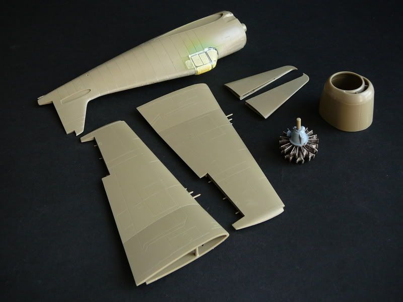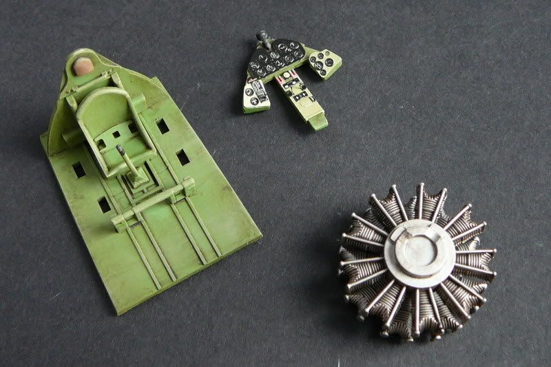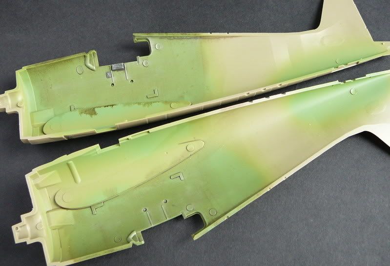 Uściślam. Śladów po wypychaczach nie usunąłem, bo stwierdziłem po przymiarkach kokpitu i zamknięciu kadłuba, że to zupełnie bezcelowe, i tak nic nie będzie widać. Kolor to Pactra Green Zinc Chromate A50. Prawidłowo czy nie ... hmmmm, grunt, że zielony :P