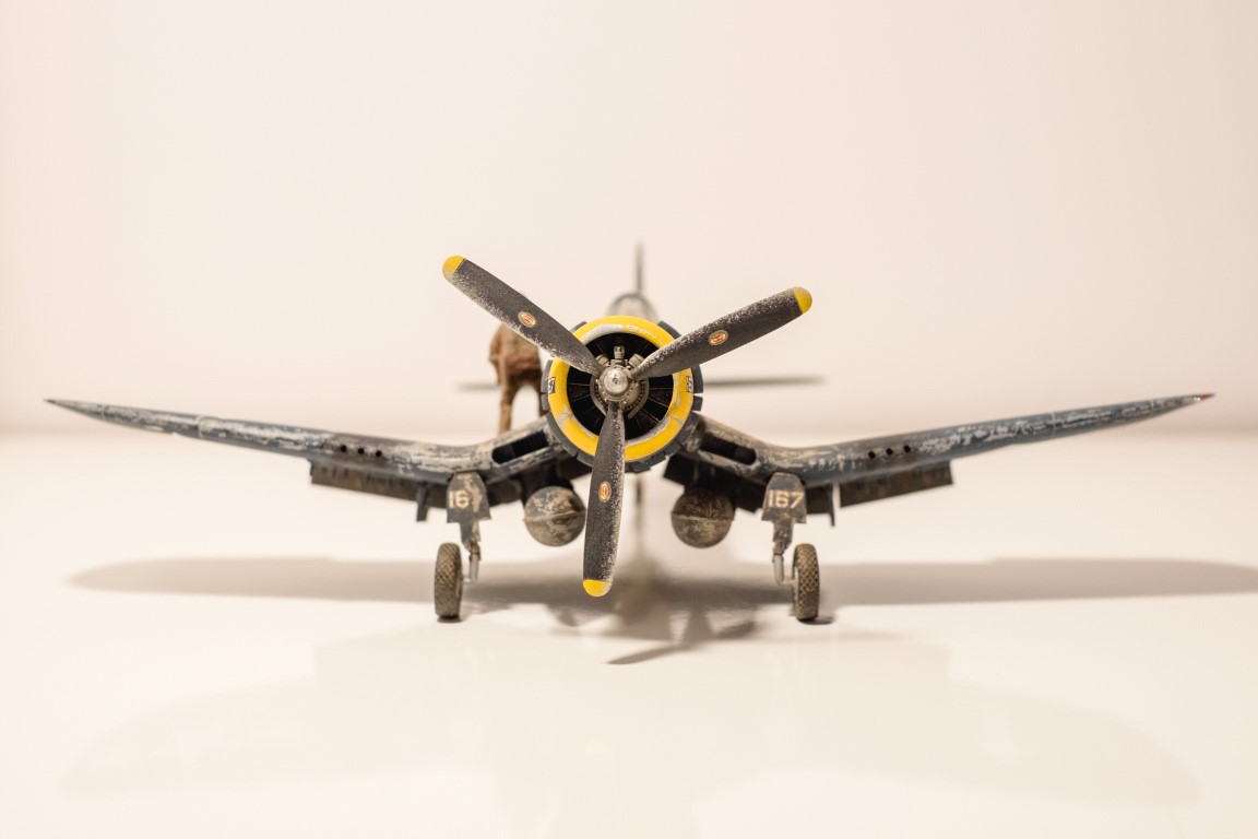 Te samoloty ktore załączyłeś jako przykład, też nie są tak obdrapane, a one są pewnie z jednostek Marines, które na stałe bazowały na lądzie. Twój model to klasyczny lotniskowcowy samolot.... nie powinien być tak styrany, gdyby miał odzwierciedlać rzeczywistość. Ale oczywiście nie musi