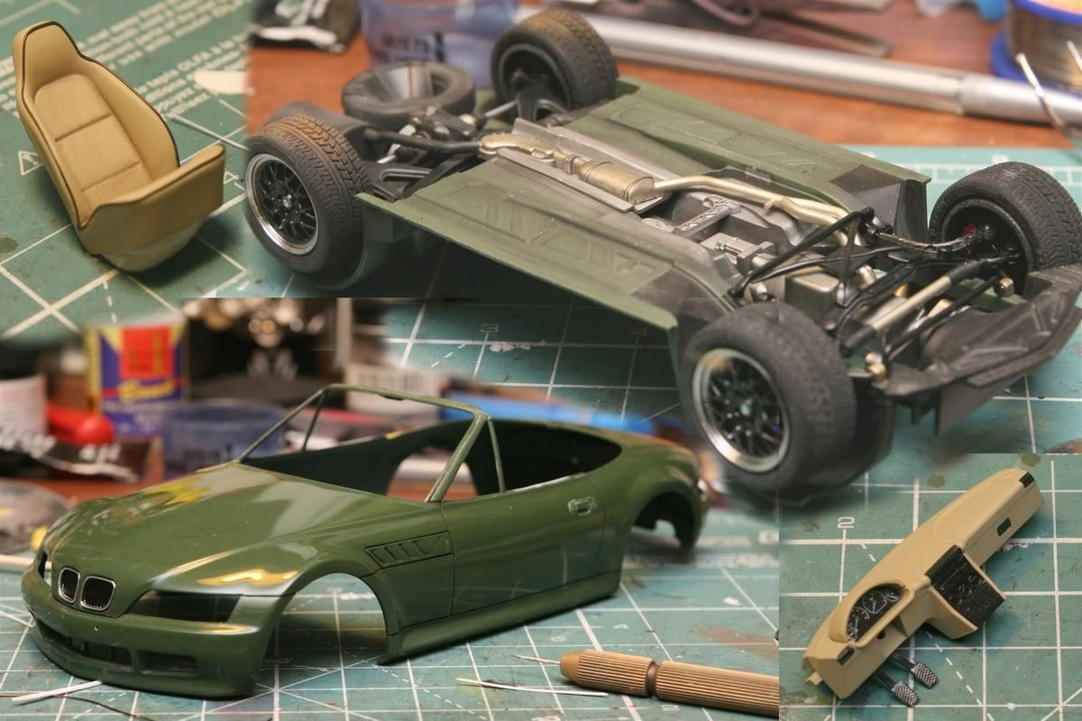 Kolor znów kontrowersyjny. Wygrzebałem puszeczkę starego revell'a i tym pomalowałem. Drugi raz bym już tak nie zrobił i jakby nie to, że podwozie zrobiłem "na gotowo" to karoserie po pierwszym malowaniu przemalowałbym na inny zielony. O oponach postaram się pamiętać.