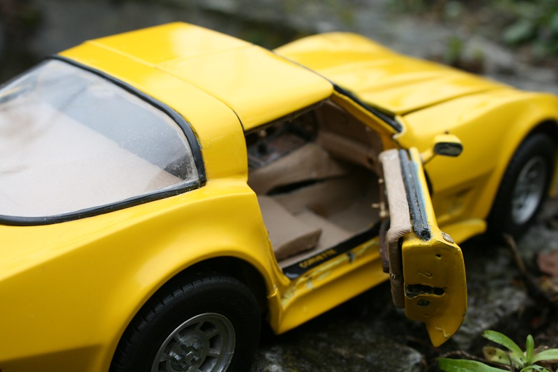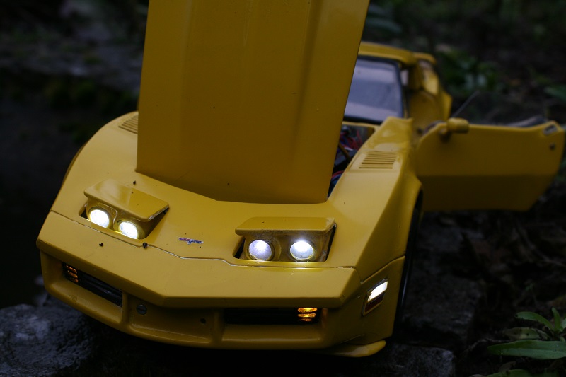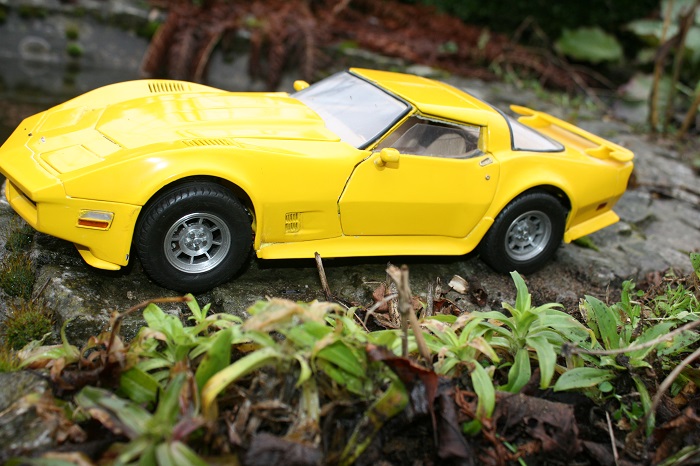 Chciałem przedstawić model Corvette C 3 . Model wykonany jest z blaszki i lutowany . Planem do budowy był oryginalny model . Własnoręcznie z wymiarowałem go i obfotografowałem . Model w założeniu miał przypominać oryginał . Jednostką napędową był silnik umieszczony z przodu następnie dwu biegowa skrzynia , wał napędowy i mechanizm różnicowy . Model ma otwierane drzwi podnoszona maskę oraz opuszczane i podnoszone reflektory . Wyposażony jest we wszystkie światła jakie posiada oryginał . Na ile udało sie osiągnąć zamiar to już ocenią widzowie .