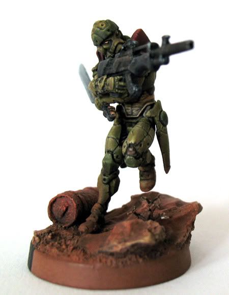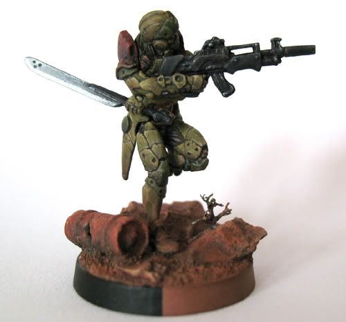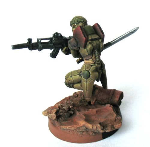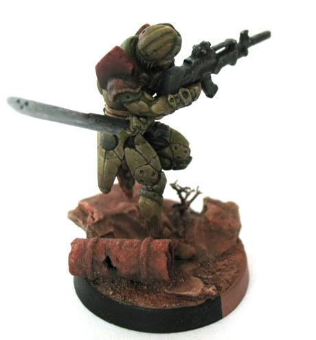 Wojak ten to twardziel, bardzo mobilna, ciężka piechota ze zdolnością do regeneracji, ze względu na świetne wyszkolenie w walce wręcz i uzbrojenie do walki na krótkim dystansie jest bardzo obyty z uszkodzeniami ;) Każda rysa na jego pancerzu to pamiątka zwycięstw, każda blizna to ślad ubitego, niewiernego wroga...