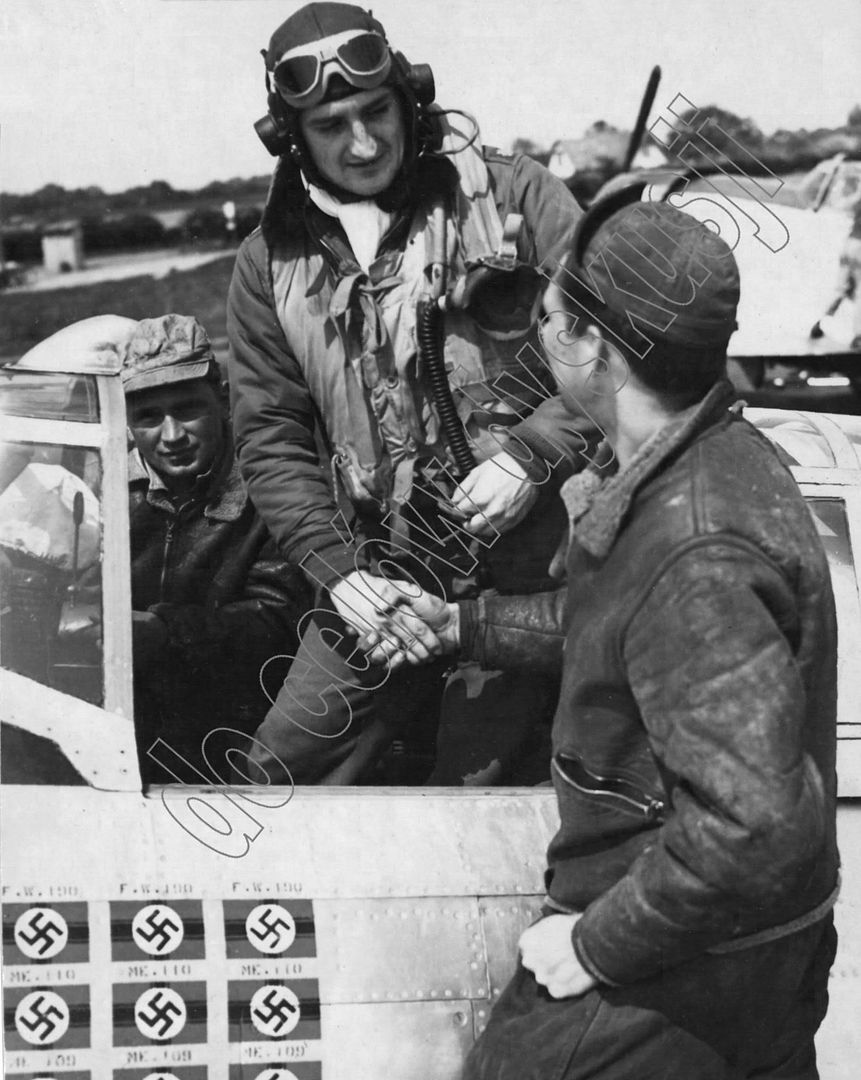 Caption: Lt. Colonel Gabreski And Crew Chief, S/Sgt. Ralph Safford, Ionia, Mich. Ass'T Crew Chief Schacki In Background.